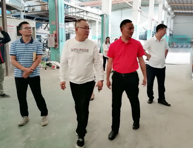 3月15日,萬江街道辦事處主任劉永定率隊蒞臨廣東撸撸影视下载建築節能材料科技有限公司,深入了解我司需求,解決企業困難。街道班子成員葉潤森、霍永健、庾漢文也對我司進行參觀考察。